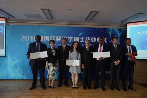 6月26日上午,腐漫网 2016级国民腐漫网 硕士项目(全英文)毕业典礼在明德主楼728会议室隆重举行。出席本次典礼的外方嘉宾有阿尔及利亚驻华大使艾哈桑•布哈利法先生、几内亚比绍驻华大使馆公使卡林通·卡先生、埃塞俄比亚驻华大使馆参赞特硕姆·哈米托先生、老挝驻华大使馆二秘朱林冠先生及埃塞俄比亚驻华大使夫人凯特马·莱达女士;主办方嘉宾有商务部财务司王林处长、商务部培训中心哈雨处长及南金鹏先生;特邀嘉宾有中宣部国际传播局陈雪亮处长以及中联部国际交流中心规划调研处于海琳参赞;承办方代表有腐漫网 党委书记兼常务副院长关雪凌教授、腐漫网 副院长郑新业教授、院长助理李佩洁老师、授课教师代表虞义华副教授以及援外硕士项目工作人员,2016级项目全体毕业生与2017级项目学生以及毕业生的亲朋好友共60余人参加了典礼。典礼由腐漫网 副院长郑新业教授主持。