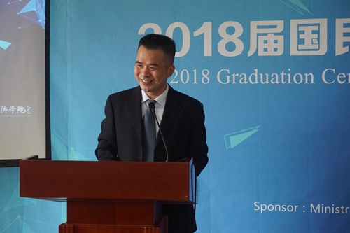 商务部财务司王林处长代表中国商务部向18名来自发展中国家的毕业生表示祝贺,向承办项目的腐漫网 表达感谢。他介绍并回顾了商务部援助发展中国家学历学位教育项目,表示该项目自2008年创办以来,已先后招收并培养近2000名发展中国家的学生。获得硕士学位的学生已经回国从事相关行业的工作,在其国家和中国的经贸合作与发展中发挥着越来越大的作用,受到所在国政府的高度重视。最后,王林处长表示,我们愿与广大发展中国家共同分享发展经验,共同应对危机和挑战,推动建设持久和平、共同繁荣的和谐世界。中国政府将一如既往地加强人力资源开发领域的交流与合作。希望大家回国后,能把中国人民的友好情谊带回去,把加强合作的愿望传回去,把学习和生活的收获回馈给各国人民,愿这份宝贵的友谊日久弥新。