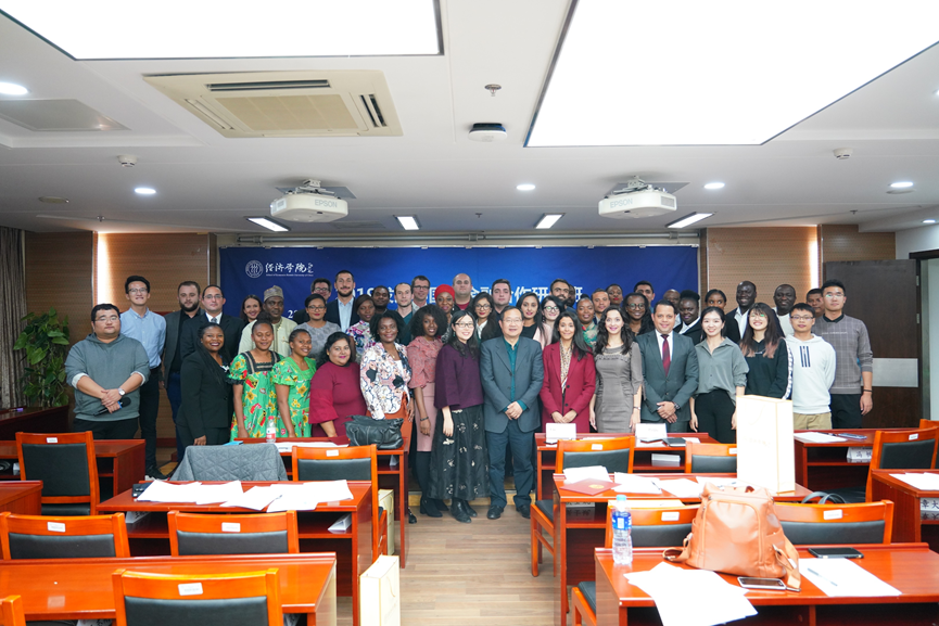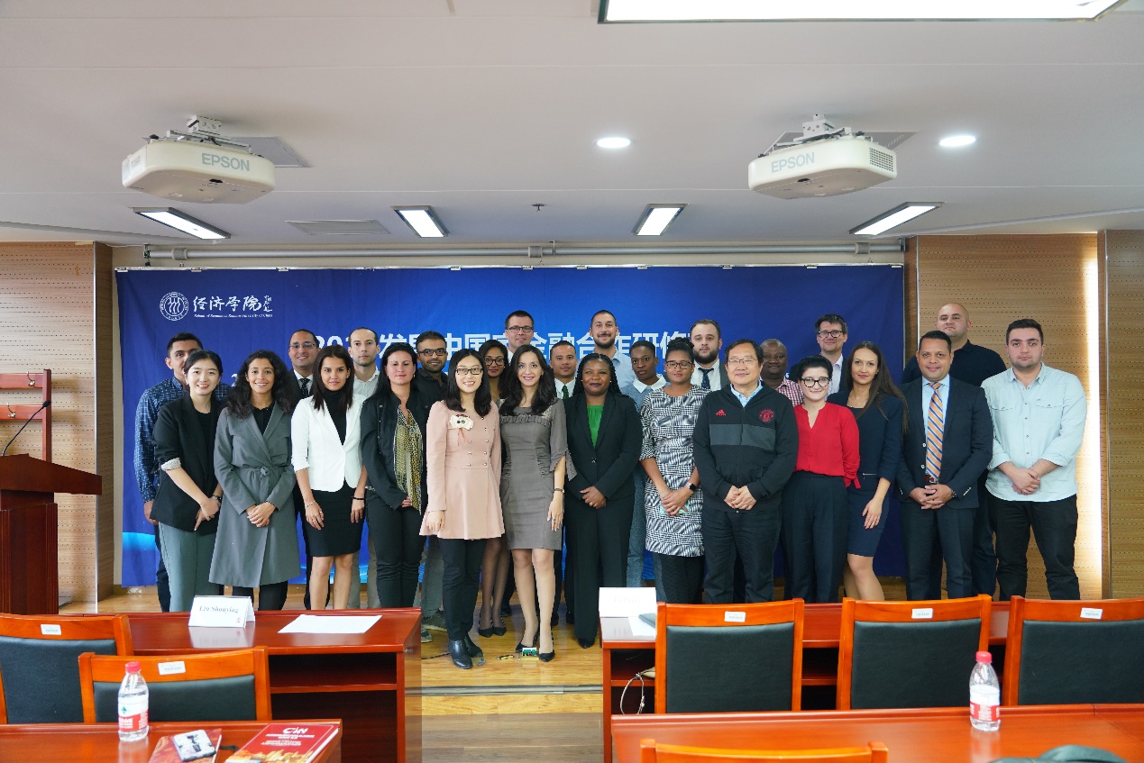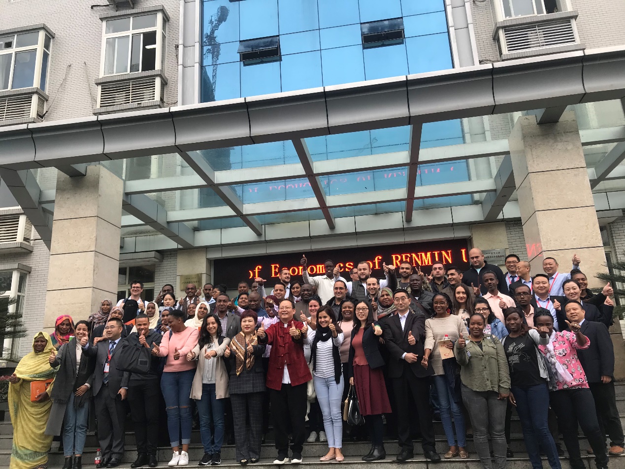 在京期间,我院邀请了程大为、门淑莲、杨继东、张杰、程华、齐昊等校内知名教授重点围绕国际贸易、系统性金融风险防范、“一带一路”与国际金融合作等课题安排了数次专题讲座,老师们的讲解深入浅出,通俗易懂,学员们表示在课程中收获很大。尤其是程大为老师关于国际贸易课程的详细介绍给研修班的学员们留下了深刻印象,下课后学员们都表示希望电子邮件与老师进行进一步的交流。来自尼日利亚的学员代表威廉先生在结业仪式上说道“感谢人民大学的教授们的每一节课程,他们用最专业的视角为我们展示了中国改革开放以来取得的伟大成就和经验,也让我们深刻领会了推动各国全面合作和交流的重要性”