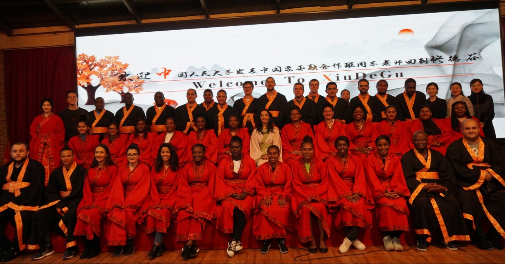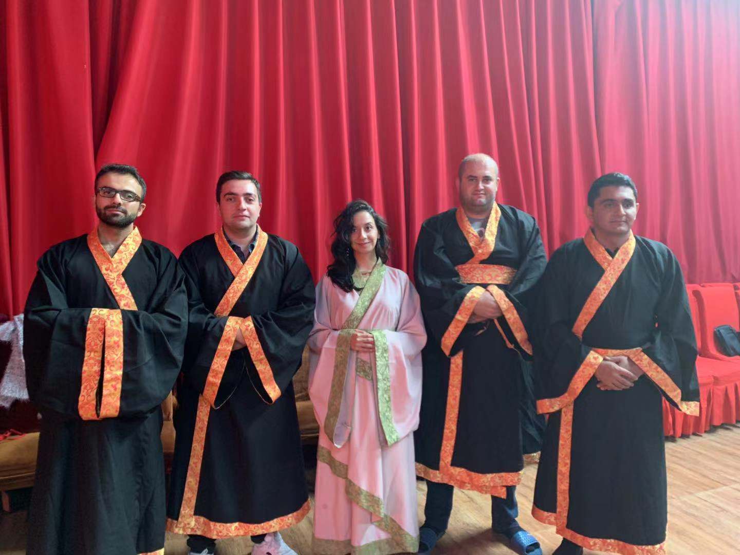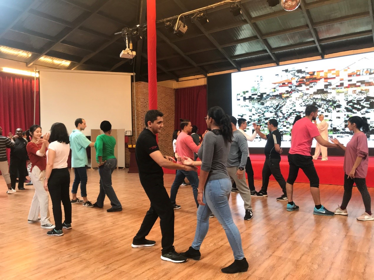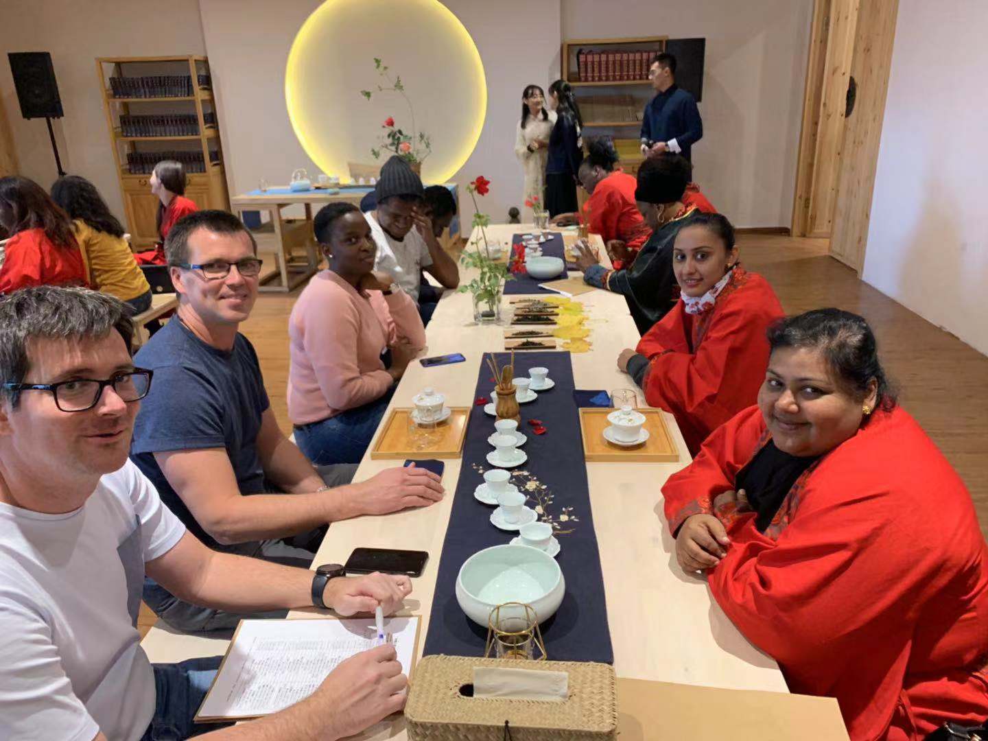 在调研之余,为了加深学员们对中国传统文化的认识和理解,我们专门安排了学员到北京修德谷国学文化中心进行国学体验。茶禅、汉服、古琴、香事、剪纸、太极中国结等中国传统民俗活动,以茶识礼、以香识静、以琴识雅,学员们穿上汉服、互行揖礼,来自15个国家的41名学员在琴与香的熏陶中度过了如痴如醉的夜晚,领略了中华传统文化无比魅力。为研修班学员讲授太极课程的是一位来自美国75岁的女性太极大师,学员们听取学习了太极拳与气功理论、太极拳基本招式和推手。课后,大师感慨道:“我曾经也在美国给外国人上太极拳课,但他们总有一种不屑一顾的感觉,尤其当我说到气时,他们的反应总是:‘对,不就是气嘛’。但你们不仅把太极拳的动作要领做得非常好,而且把握住了太极中平和、宁静的境界,这一点我很欣赏。”通过此次国学文化体验,学员们纷纷表示中国传统文化之丰富多彩与博大精深令人震撼,这些活动都会成为了他们此次研修班最难忘的经历。