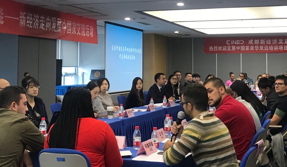 10月23日,官员们参访了成都新经济发展研究院并参加座谈会。在城市推介环节,成都新经济发展研究院副院长张宇,向发展中国家政府代表介绍了成都新经济发展的基本情况、政策体系、经验成效以及成都在“一带一路”倡议中的城市定位,表示成都将以世界的眼光定位城市成长坐标,以开放的姿态融入到全球的创新链、产业链和价值链中,进一步增进与发展中国家在新经济领域的交流合作。在新产品推介环节,智元汇、域上和美、知几未来、鱼鳞图、极致互动、成都大学杂粮国家重点实验室等成都新经济企业及项目代表,展示、推介了各自的新产品、新项目。