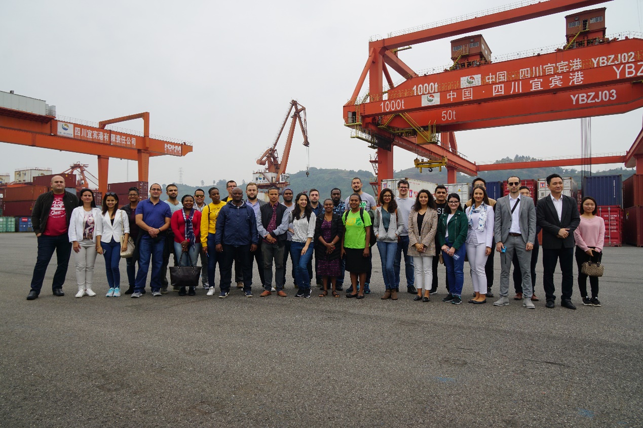10月19日,考察团抵达宜宾港及其临港经济开发区进行考察访问,港口负责人详细展示了宜宾港的区位优势和战略定位,并对金融合作框架下宜宾港的具体运作方式进行了解释说明,突出了宜宾在长江经济带乃至“一带一路”发展中的重要作用。