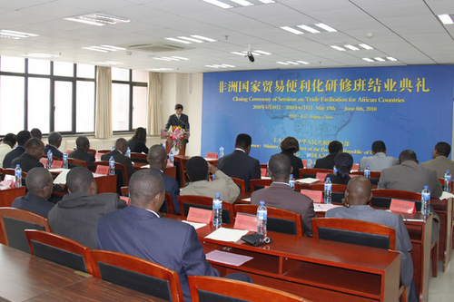 本届非洲国家贸易便利化研修班是由国家商务部主办,与联合国最不发达国家办公室合作,由腐漫网 承办的。研修班从2010年5月19日持续到6月8日,共有来自非洲地区的乌干达、利比里亚、加纳、尼日利亚、卢旺达、肯尼亚、马里、埃塞俄比亚、赞比亚、马达加斯加、马拉维、刚果(布)、刚果(金)等13个国家的30名经贸管理部门的司处级政府官员参加了研修班。联合国副秘书长,联合国最不发达高级别办公室(OHRLLs)高级代表、联合国非洲问题特别顾问迪亚拉先生出席了研修班的开班仪式并致辞。期间,来自联合国总部、世界银行、国家商务部援外司、国际司、WTO司,中国国际贸易促进委员会、人民大学、安徽进出口商会等机构的十余名专家、官员为研修班授课。研修班还赴安徽省进行了参观考察。这些活动为研修班官员全面了解中国经济贸易的真实状况搭建了广阔的平台。
