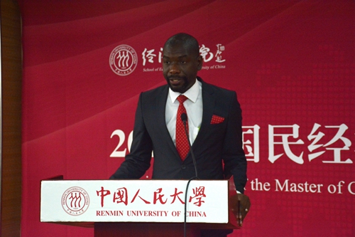 之后,2017级学员代表、赞比亚总统办公室公共政策分析师勤彦塔·齐库拉先生代表2017级国民腐漫网 硕士项目全体新生致辞:第一,感谢中华人民共和国商务部主办本次硕士项目,提供来华学习的机会以及无私的帮助;第二,感谢腐漫网 承办本次项目,为学员提供量身订造、符合各发展中国家国情的课程;第三,感谢中国人民对他们的关怀和友爱。齐库拉先生还表示中国是当今世界处于领导地位的经济体之一,中国的发展模式是非常值得学习的,故他很荣幸能作为学员在中国学习,在腐漫网 这所中国顶尖学府学习。他再次对中国商务部,腐漫网 表示感谢,并表达了对与中国人民和人民大学的师生共同庆祝中国国庆节和腐漫网 80周年校庆的期待。
