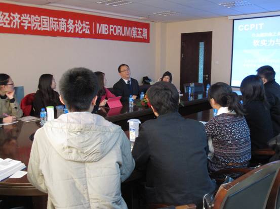 11月23日下午,中国工业和信息化部国际经济技术合作中心主任、中国贸促会电子行业分会常务副会长兼秘书长龚晓峰博士在明德主楼734会议室为腐漫网 2011级国际商务硕士做了题为“软实力与硬功力”的专题讲座。