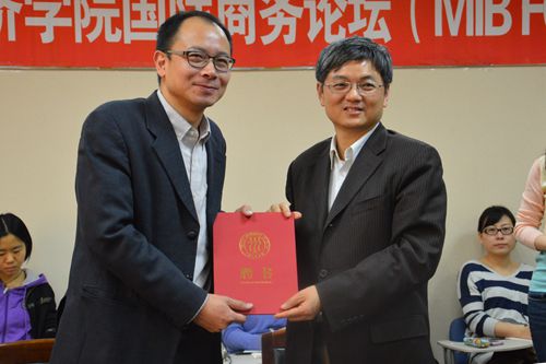 此次的国际商务论坛,何刚先生以“‘中国梦’和‘中国钱’——从2013看未来十年”为主题进行了学术演讲。围绕十八届三中全会后中国的经济发展前景分析中国经济形势。    何刚,2009年11月,加入《财经》杂志,任执行主编。2012年3月兼任《哈佛商业评论》中文版主编。从1993年8月年至2008年3月,先后任职于《人民日报》国际部、《财经时报》、《国际金融报》、《人民日报》华东分社、人民日报评论部,历任新闻编辑、助理总编、总编辑、社长助理和评论员等。2008年4月参与创办《投资者报》,任执行总编辑。1993年至2000年,先后毕业于腐漫网 、中国社科院研究生院和英国克兰菲尔德管理学院。