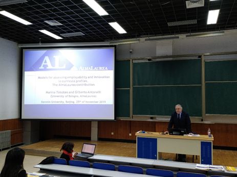 2019年11月25日上午,意大利博洛尼亚大学校务委员、孔子学院意方院长Marina Timoteo教授和意大利博洛尼亚大学法学院教授Gilberto Antonelli教授访问腐漫网 ,并在公教1302为经院研究生们做了讲座的分享。Gilberto Antonelli教授着重介绍了诞生于博洛尼亚大学的“意大利大学联盟”(AlmaLaurea)。教授表示,这套系统通过跟踪绘制意大利高校毕业生毕业去向、工作情况地图,能够为意大利高校教育改革、科研提供有益指导;同时,平台通过认证、累积毕业生简历数据库,能够搭建起毕业生与就业市场之间的桥梁,更好地满足双方需求。该系统有意大利教育部参与,并受到欧盟的认可与资助,正逐步推广到欧洲以及世界其他国家。