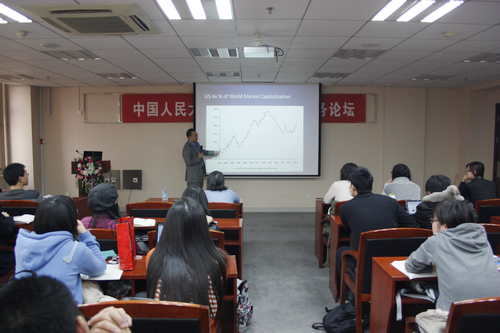 在讲座中,李春亮先生首先向同学们阐释了国际资本市场和经济、政治间的密切关系;接着介绍了世界资本市场的现状以及欧、美发达国家资本市场在全球比重的萎缩与新兴国家资本市场迅速崛起的趋势;最后详细回顾了2008年世界金融危机以及危机时各国政府采取的积极行动。    演讲人精彩的内容,深刻的思想引起了同学们的思考,同学们在演讲结束后踊跃提问,李春亮先生一一耐心予以回答。同学们在会后纷纷表示收获颇丰。    李春亮,现任Spinnaker Capital Group (三帆资本:世界上最大的新兴市场对冲基金之一)大区总监,曾在TRG Management、苏黎世金融服务集团、瑞士再保险公司和摩根大通等任高管。他有二十多年公共/私人投资和投行工作经验,对中西方两个文化平台和金融服务平台都深有研究。曾获腐漫网 腐漫网 学士学位和美国杜克大学MBA学位。    【国际商务论坛】是腐漫网 国际商务硕士项目倾力打造的主题论坛,依托国际国内国际商务领域有杰出成就的高端专业人士,重点关注全球商务热点,从国家的角度、行业的角度、企业的角度全方位解读国际商务,旨在为学院国际商务硕士搭建一流的交流平台,拓展全球视野,积累实战经验!