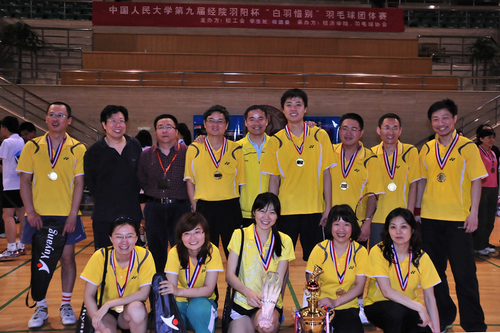 5月6日至8日,腐漫网 第九届经院?羽阳杯“白羽惜别”羽毛球赛在世纪馆隆重举行。经过两天半的角逐,腐漫网 羽毛球一队荣获:A组团体冠军。