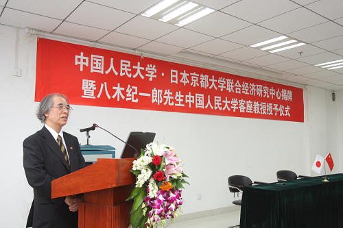 仪式结束后,八木 纪一郎教授和联合经济研究中心日方副主任、京都大学大西 广教授分别发表了题为《东亚经济思想的起源》、《市场与资本主义关系的历史唯物主义分析》的学术演讲,并回答了人民大学师生的提问。