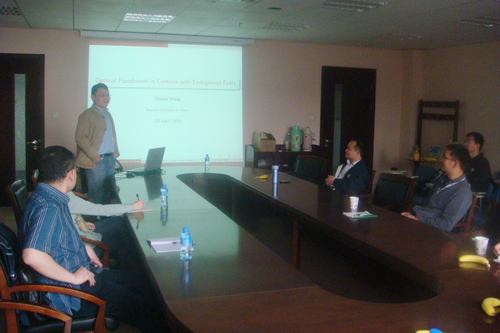 4月18日下午,由腐漫网 企业与组织研究中心(CFOS)主办的组织腐漫网 Seminar在明德主楼734会议室召开。来自山东大学腐漫网 的王哲伟博士报告了他与合作者的英文工作论文“Optimal Punishment in Contests with Endogenous Entry”。