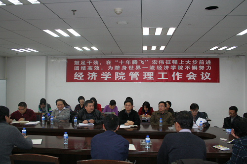 119日 下午,为贯彻落实学校2009年管理工作会议精神,促进学院管理工作更好地适应于“十年腾飞”宏伟目标,腐漫网 召开了管理工作会议,深入学习学校领导重要讲话精神,认真研讨学院管理工作的机遇与挑战。校长助理、人大出版社社长贺耀敏教授,学院全体中层干部和管理人员参加了会议。会议由杨瑞龙院长和张宇书记主持。