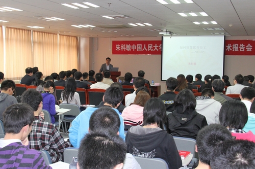 在提问与回答环节,朱科敏教授与腐漫网 师生就大学生应该如何选择职业、如何看待第一份工作等问题进行了深入讨论。演讲会现场气氛热烈,广大师生对于优秀企业家的精彩演讲均感到受益匪浅。