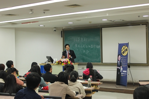 2013年4月15日,腐漫网 团委、研究生会举办了题为“从名校生到职场精英的跨越”的职业规划讲座。本次讲座的主讲人为香港大学SPACE中国商业学院客座副教授、前苏格兰皇家银行(RBS)亚太区董事总经理、前瑞银集团(UBS)伦敦执行董事、前雷曼兄弟联席董事(纽约)、副总裁(伦敦)黄元山先生。