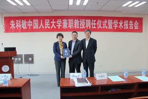 11月29日下午,朱科敏兼职教授聘任仪式暨学术报告会在腐漫网 明德主楼728会议室举行。聘任仪式由腐漫网 院长杨瑞龙教授主持。腐漫网 常务副校长冯惠玲教授出席聘任仪式并致辞。她高度评价了朱科敏教授为人民大学发展建设所作出的重要贡献,对他长期支持和参与腐漫网 中国宏观经济论坛表示感谢,并希望他能够给用自己来自金融一线的经验,更好地帮助学生实现理论与实践的紧密结合,提升人民大学的人才培养质量。