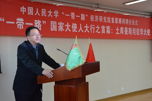 10月12日下午3时,腐漫网 “一带一路”经济研究院首席顾问聘任仪式暨“一带一路”国家大使人大行之首篇:土库曼斯坦驻华大使讲座在明德主楼728室举行。土库曼斯坦驻华大使鲁斯塔莫娃?奇娜尔?塔吉耶夫娜女士来访并发表题为《土库曼斯坦:昨天今天明天》的主题演讲。