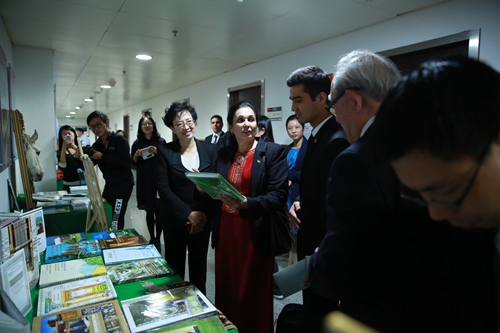随后,受鲁斯塔莫娃大使的邀请,靳诺书记和其他来宾还饶有兴致地参观了土库曼斯坦的文化展览。精妙绝伦的特色地毯,羊毛帽子,小工艺品,五彩斑斓的民族服饰,栩栩如生的汗血宝马浮雕,可口的风味小吃,令大家连连赞叹,对这个中亚国家充满了向往。