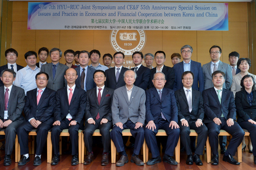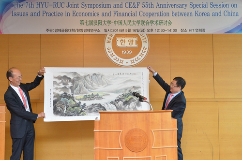 今年5月15日适逢汉阳大学经济金融学院建院55周年。韩国国民银行行长兼首席执行官(CEO)Kun Ho Lee到会,并对两个学院的联合研讨会及汉阳大学经济金融学院55周年院庆表示祝贺,并发表了题为“Financial Cooperation between Korea and China”的主旨演讲。