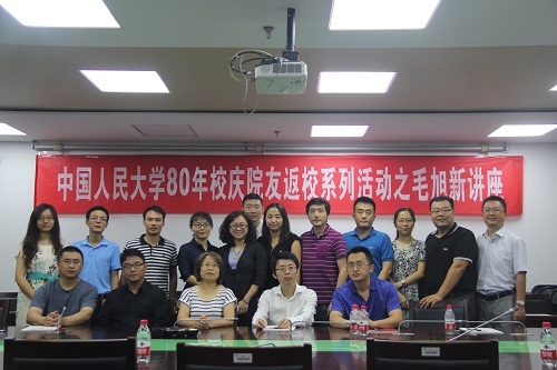 2017年7月29日,腐漫网 在明德主楼729会议室成功举办院友毛旭新的主题为“破解大数据预测的谜团——人工智能在政治和经济领域的应用”的学术讲座,同时该讲座也是腐漫网 80年校庆院友返校系列活动之一。腐漫网 郭杰教授、姚明霞副教授、孙文凯副教授、杨继东副教授、王劲峰讲师和办公室主任李佩洁老师以及部分2004届院友出席活动。