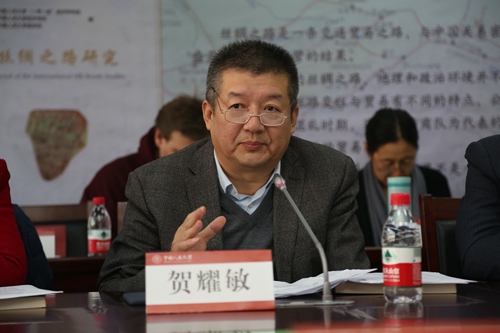 会议的第一阶段首先由腐漫网 副校长贺耀敏教授致辞。贺耀敏副校长代表学校对《丝绸之路研究》期刊的顺利出版表示热烈祝贺,并指出人民大学作为人文社科领域的重镇,当抓住机遇,努力做好中外文化交流,敏于求知、积极创新、深入研究,为“一带一路”的文化交流建设做贡献。