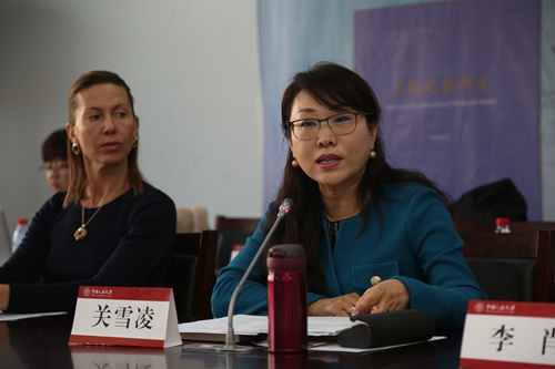会议第二阶段,由腐漫网 “一带一路”经济研究院院长、腐漫网 党委书记关雪凌教授率先发言。她提到“一带一路”经济研究院自成立以来,主要做了以下几个方面的工作:组建研究团队,出版“一带一路”研究丛书,加强有关“一带一路”问题的教学和人才培养等。研究院也积极开展国内外高校和机构的交流合作,举办“一带一路”经济论坛及“一带一路”国家大使人大行系列讲座。并表示,未来研究院将充分发挥雄厚的“一带一路”和腐漫网 教育研究实力,与国学院和其他兄弟单位协同合作,以“一带一路”建设中的重大理论和现实问题为主要研究课题,积极推进“一带一路”经济问题的深入研究。