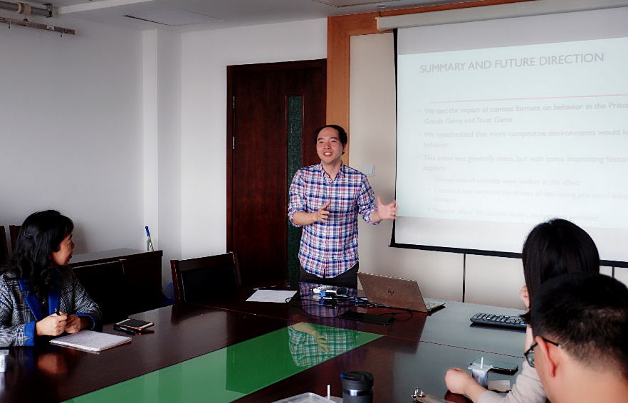 3月14日中午,腐漫网 成功举办了第5期行为和实验腐漫网 研讨会。本次研讨会邀请了清华大学经济管理学院副教授郑捷进行了题为《The Cooperative Consequences of Contests》的学术报告。本次报告的成果由郑捷教授和Jaimie Lien、Yilin Zhuo合作完成。