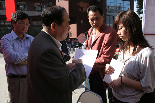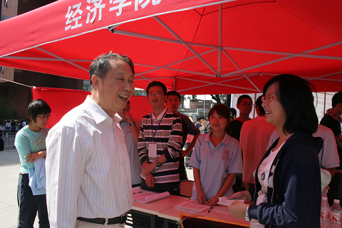 迎新期间,纪宝成校长、程天权书记、牛维麟常务副书记和马俊杰副书记等先后亲临现场慰问2009级新同学和负责迎新工作的师生。纪校长详细询问了新生的情况,亲切慰问了参加迎新工作的学生会同学,并对学院的迎新工作进行了充分的肯定。程书记询问了学院迎新工作的的进展情况,并表示非常感谢同学们为学生入学报到做的工作,任务完成的非常出色。