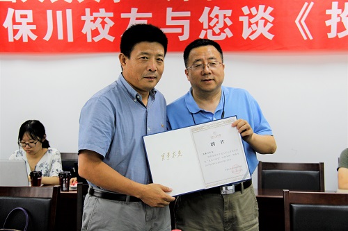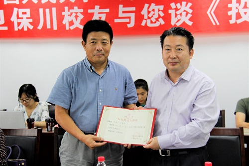 首先,郭海鹰主任为主讲嘉宾颁发了讲座纪念证书,张宇教授为卫保川校友颁发了“校友大讲堂”特聘导师聘书。