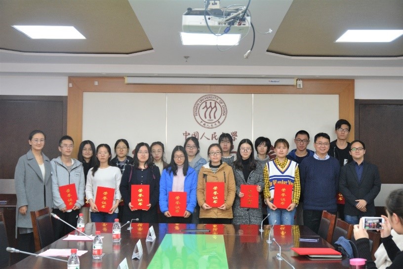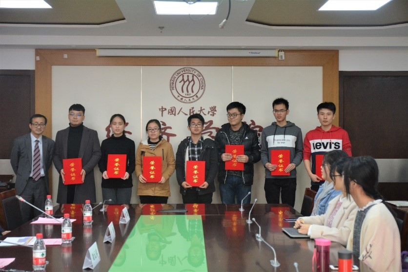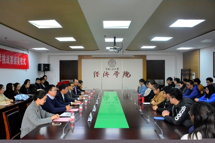 2018年11月23日中午,腐漫网 首届大学生腐漫网 挑战赛颁奖仪式在腐漫网 729会议室顺利举行。腐漫网 副校长兼腐漫网 院长刘元春教授、腐漫网 副院长陈彦斌教授、腐漫网 院长助理于泽教授、腐漫网 赵峰副教授、刘凯副教授、周璇副教授和教务科李聪老师出席颁奖仪式,仪式由腐漫网 院长助理于泽教授主持。
