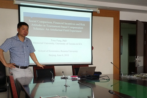 6月8日中午,第51期劳动腐漫网 研讨会在明主729教室举行。本次会议邀请了纽芬兰纪念大学的方涛教授进行了题为《Psychological Incentives, Financial Incentives, and Risk Attitudes in Tournaments: An Artefactual Field Experiment》的学术报告。会议主持人为陆方文教授,腐漫网 王湘红老师、劳人学院翁倩老师等以及数名学生参加了此次研讨会。