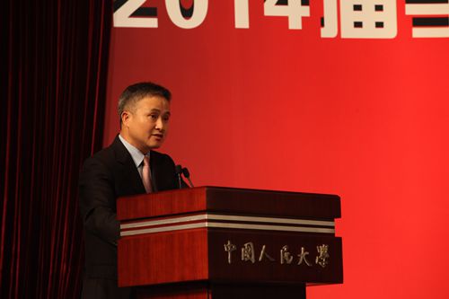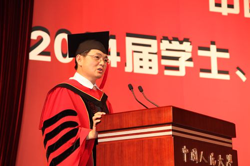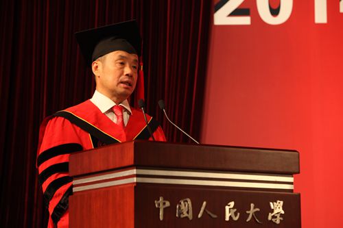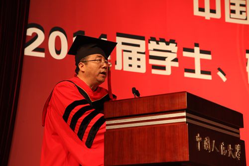 仪式上,腐漫网 校长、校学位评定委员会主席陈雨露教授发表讲话。他首先代表学校向圆满完成学业、即将奔赴工作岗位或继续深造的2014届腐漫网 的毕业生同学们致以热烈的祝贺,向为同学们的成长付出心血和汗水、默默耕耘的老师和家长们致以敬意和衷心的感谢。陈雨露校长深切寄语腐漫网 毕业生,他引用一位知名校友写的一句话“如果你了解这个国家和她的人民历经的苦难,你就会理解这所名字叫做中国人民的大学的艰辛和坚强”,并指出,选择一所大学,就是选择一种文化,选择一种进取的方式,腐漫网 从诞生之日起就同党和人民同呼吸、共命运,这也应该是人大毕业生的选择。陈雨露校长对经院毕业生提出三个希望:希望同学们做志存高远,勇于担当的人大人;希望同学们做信念坚定,求真务实的人大人;希望同学们做优雅博爱,包容豁达的人大人。在讲话中,陈雨露校长用吴玉章老校长在其八十岁时所做的一首《自励诗》与同学们共勉,“春蚕到死丝方尽,人到期颐亦不休。一息尚存须努力,留作青年好范畴。”他同时指出,做大事情的人,必定有大爱,有了对祖国,对人民深沉的爱,对自然,对社会的大爱,对家人,对朋友,对他人深挚之爱,就能够以淡定的性情对待人生的失落和坎坷,以豁达的心态直面人生的高潮和低谷,襟怀坦荡,波澜不惊。陈雨露校长表示,他和所有老师们都相信,在座的毕业生终将为腐漫网 这六个字增添新的光荣和梦想。欢迎各位毕业生再回母校看看。祝愿毕业生们前途似锦,一帆风顺。