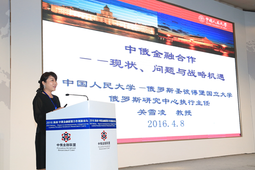 4月8日上午,2016中俄金融联盟合作创新论坛在海南三亚举行,腐漫网 党委书记兼腐漫网 —俄罗斯圣彼得堡国立大学俄罗斯研究中心执行主任关雪凌教授受邀参加并发表题为“中俄金融合作——现状、问题与战略机遇”的主题演讲。俄罗斯联邦储蓄银行、CIB首席经济师叶甫盖尼?戈夫列宁科夫,俄罗斯联邦储蓄银行企业大学校长瓦列里?谢尔盖耶维奇?卡契卡勒等嘉宾出席论坛。
