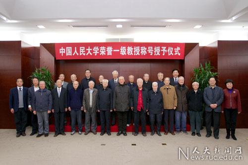 校党委书记程天权、校长陈雨露、常务副校长冯惠玲、党委副书记兼副校长王利明,新授荣誉一级教授代表黄顺基、孙国华、陈共、李占祥、周升业、王作富、胡 钧、许崇德、严瑞珍,荣誉一级教授代表卫兴华、方汉奇、邬沧萍、高放、高铭暄,一级教授代表方立天、吴易风、李文海、陈先达、郑杭生、胡乃武等出席授予仪式。相关学院和部门负责人、二级教授代表、中青年教师代表、学生代表等参加仪式。