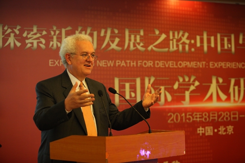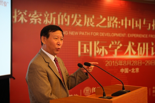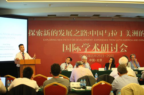 2015年8月28日-29日,“探索新的发展之路:中国与拉丁美洲的经验”国际学术研讨会在北京友谊宾馆召开。该研讨会由腐漫网 与美国哥伦比亚大学政策对话倡议组织(IPD)联合主办,中国特色社会主义经济建设协同创新中心、国务院国有资产监督管理委员会研究中心以及哥伦比亚大学全球中心(东亚?北京)协办。出席本研讨会的嘉宾有来自哥伦比亚大学、联合国发展政策委员会、联合国拉丁美洲委员会等单位的数十位国际友人与各国专家学者以及来自各中央国家机关、高等院校、科研院所以及中央企业的中国官员、专家和企业家。腐漫网 校长陈雨露出席研讨会并致辞,腐漫网 院长张宇主持了开幕式。
