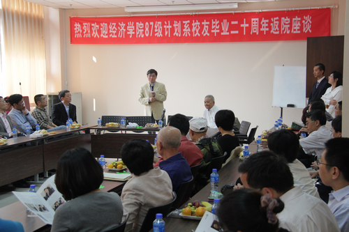 10月5日,学校举办“1987级校友毕业二十周年返校纪念活动”,87级计划系计划经济、价格、生产布局三个专业近60名院友回到学院,与当年的任课老师、班主任进行了热烈的座谈。腐漫网 院长杨瑞龙教授参加了座谈会。