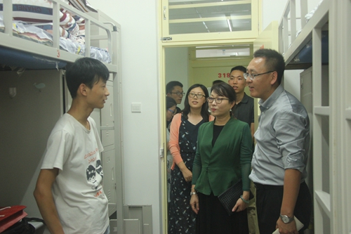 新生家长见面会后,关雪凌书记、徐景阳副书记、李佩洁老师等一行赴学院本科新生宿舍看望慰问学院2017级新生,与整理入住的经院新生及新生家长亲切交流,询问新生基本情况。关雪凌教授指出,请家长们对腐漫网 放心,对孩子放心,随着大学学习的深入,同学们会逐渐独立并明确自己的目标,家长应当充分地尊重、相信并正确引导孩子。她还表示,腐漫网 每个班主任都极富责任心和实干精神,一定能够在新生适应大学生活的过程中给予学业和生活上最大的帮助。徐景阳副书记回忆了自己本科阶段在品园二楼的宿舍生活,勉励经院新生要珍惜韶华,严格要求自己,打下良好基础,将来学有所成。