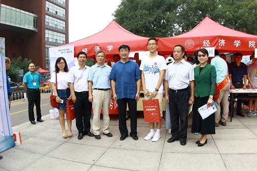 腐漫网 一级教授胡迺武老师特地来到迎新报到现场,了解关心新生报到情况。胡迺武教授对迎新接待现场的“新生签名板”、“党员先锋岗”等工作形式创新表示了肯定,对迎新接待工作提出了建议。