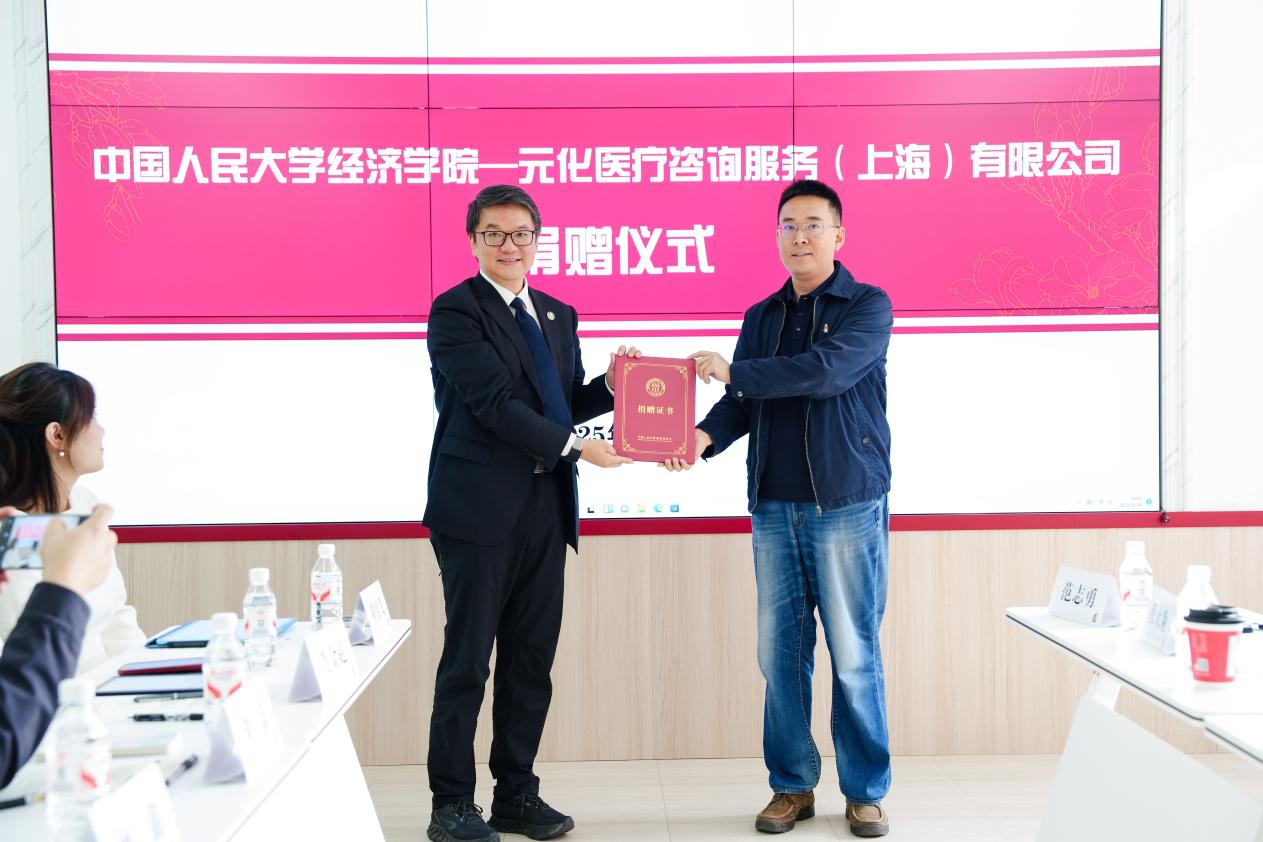 元化医疗董事长兼CEO何鑫先生表示,2025年正值公司成立20周年,企业始终秉持“您的健康是我们的职责”的理念,深耕“管理式医疗”模式,已成为服务金融、科技、能源等众多行业头部企业的中国健康服务领军机构。他指出,伴随中国企业加速全球化,深刻体会到全球化带来的综合风险,这与人大腐漫网 在国际经济与地缘政治领域的研究优势高度契合。他认为,人大“实事求是”的校训与元化医疗务实诚信的价值观一脉相承,此次捐赠是双方家国情怀与全球视野的共同体现。作为致力于资源优化与社会价值创新的企业,元化医疗坚信学术研究是应对全球挑战的基石,支持“企业出海”相关研究既是履行企业社会责任,也是通过前沿洞察赋能中国商业实践的重要举措。
