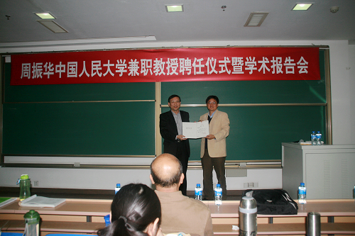 上海市人民政府发展研究中心主任周振华受聘人民大学兼职教授并在腐漫网 发表演讲