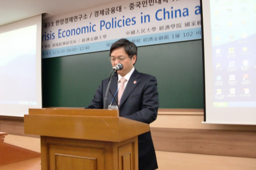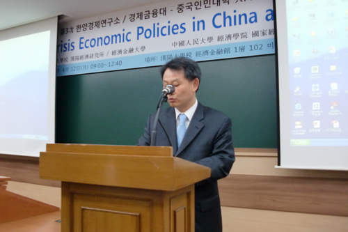 汉阳大学是韩国知名学府,学校致力于拓展教育创新、深度研究、国际合作等领域。从2008年起,腐漫网 国民经济管理系就与汉阳大学经济金融学院经济研究所定期举办过两次共同学术研讨会。今年经双方院领导沟通协商,决定将第三期研讨会升级为两院共同学术交流活动,会议围绕“全球经济危机后中国、韩国宏观经济政策走向”主题展开讨论。
