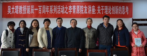 11月6日上午,腐漫网 杰出女性院友系列论坛在明德主楼734会议室举行。本期论坛以“关于理论创新的思考”为主题,邀请到了吴大琨教授的学生李青原院友作为主讲嘉宾。腐漫网 原副校长、腐漫网 院友会会长杜厚文教授,腐漫网 院长张宇教授、腐漫网 雷达教授、宋利芳教授以及腐漫网 部分学生参加了此次讲座。讲座由腐漫网 杨志教授主持。
