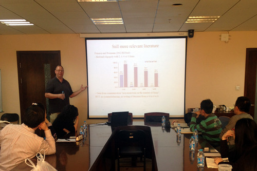 12月19日中午,腐漫网 第二十七期发展腐漫网 研讨会在明德主楼734会议室举行,澳大利亚Monash大学的Nick Feltovich教授报告了“群体大小如何影响交流效果——来自公共品实验的证据”。腐漫网 王湘红教授、孙文凯副教授、叶茂亮博士、刘凯博士以及包括腐漫网 在内各个学院的部分博士、硕士研究生参与了会议。