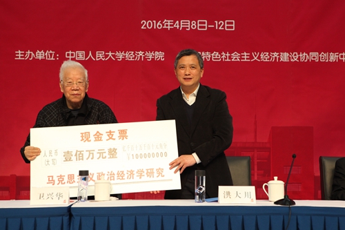 在开学典礼上,卫兴华教授把自己刚刚获得吴玉章终身成就奖的100万元奖金无偿捐赠,用于支持马克思主义政治腐漫网 的教学研究、人才培养及优秀成果奖励。卫兴华教授为中国经济理论的发展和社会的进步奋斗一生,九十余岁高龄仍战斗在理论腐漫网 一线,现在又捐出奖金用以支持马克思主义政治腐漫网 的发展,他的高风亮节让与会的学员和师生十分感动。