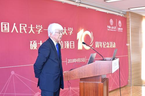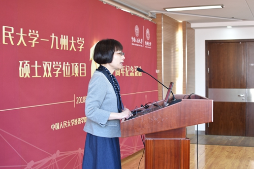 随后,腐漫网 学术委员会主任高德步教授重点介绍了该项目建立和发展的历史。他强调,九州大学是我院经济系第一个接触和建立学术交流关系的国外高校,自1985年建立联系以来,两院之间一直保持着非常密切的关系;2008年,在学校多个部门的大力支持下,腐漫网 与九州大学腐漫网 研究院正式签署双学位项目合作备忘录,项目开展十年以来,九州大学在资助和培养我校32位学生上做出了巨大努力,我们要通过这次纪念活动总结十年来的经验、开拓多种交流合作渠道,推动项目在下一个五年更高水平地运行。