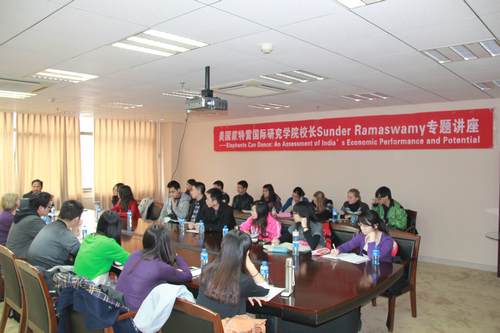 会见后,Sunder Ramaswamy校长还出席了腐漫网 国际商务论坛,为国际商务硕士班的学生作了题为“Elephants Can Dance: An Assessment of India’s Economic Performance and Potential”的专题讲座,同学们积极参与,纷纷表示受益匪浅。