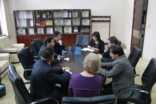 随后,腐漫网 杨瑞龙院长与Sunder Ramaswamy校长一行在腐漫网 614会议室举行会谈。杨瑞龙院长对Sunder Ramaswamy校长一行的来访表示欢迎。杨瑞龙院长向来宾介绍了目前该项目的运行情况,对于双方的合作给予了高度评价。他也希望双方能够进一步深化合作,拓宽合作领域,开展教师互访等,为培养能够在中西两个文化平台上自由往来、具有宽阔国际视野的优秀国际商务人才做出有益的探索。