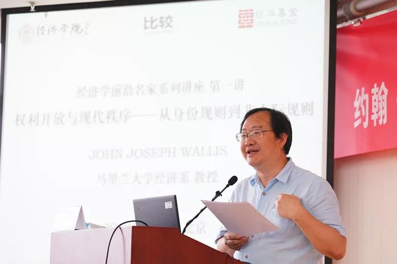 刘守英教授作为主持人,向听众介绍了沃利斯教授。刘守英教授指出对许多国家来说,身份规则占优势并具有很大的影响力,只有少数国家发展出了非人际规则。如何在政治与经济的互动中产生非人际规则是社会科学的一个谜题,沃利斯教授将带领我们了解社会如何解决这一问题。