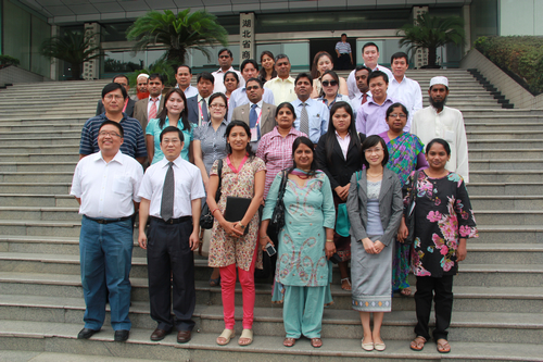 孟加拉驻华大使代办阿布杜?沙克尔先生首先祝贺研修班取得圆满成功。他表示参加此次研修班的29名发展中国家官员本着共同促进国际交流、发展国家友谊、增进了解、互相学习的精神向中国人民学习改革开放以来取得的伟大成就。阿布杜?沙克尔先生进一步表示,中国是世界上成功崛起的大国之一,是发展中国家走上致富道路的标杆,是全世界人民共同学习的榜样,希望各国代表能够通过此次交流学习取得巨大的收获。