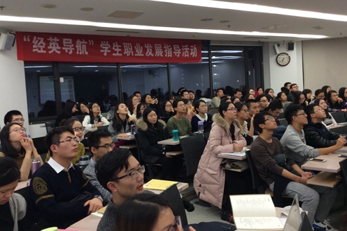 2016年12月18日,由腐漫网 学生职业发展中心主办、团委研究生会职业规划部承办的“经英导航”系列讲座——走进券商与银行讲座在明法0502举行,此次讲座邀请到了裘索夫(中国中投证券固定收益部)、黄鹏(国泰君安证券投资银行部)、吴海军(中国农业银行总行)和陈鹏(中国工商银行总行)四位青年校友,为同学们带来多方位的求职指导。