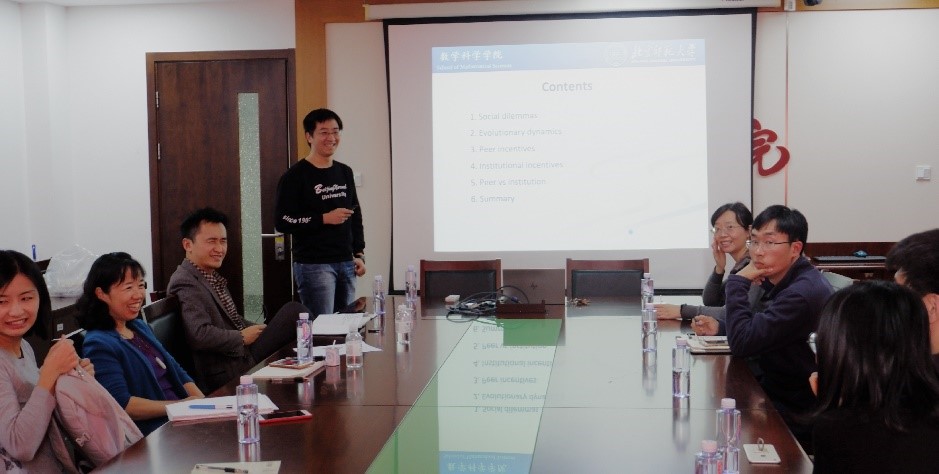 1031日中午,腐漫网 成功举办了第3期行为和实验腐漫网 研讨会。本次研讨会在明德主楼734会议室举行,邀请了北京师范大学数学科学学院副教授张博宇进行了题为《The role of incentive in promoting cooperation》的学术报告。腐漫网 陆方文教授主持了该会议,王湘红教授作了精彩点评。